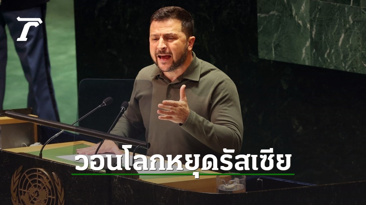 โวโลดีเมียร์ เซเลนสกี ประธานาธิบดียูเครน ร่วมการประชุมสมัชชาใหญ่สหประชาชาติ พร้อมเรียกร้องให้ชาติต่างๆ ทั่วโลก ร่วมมือกันหยุดยั้งการรุกรานของรัสเซีย