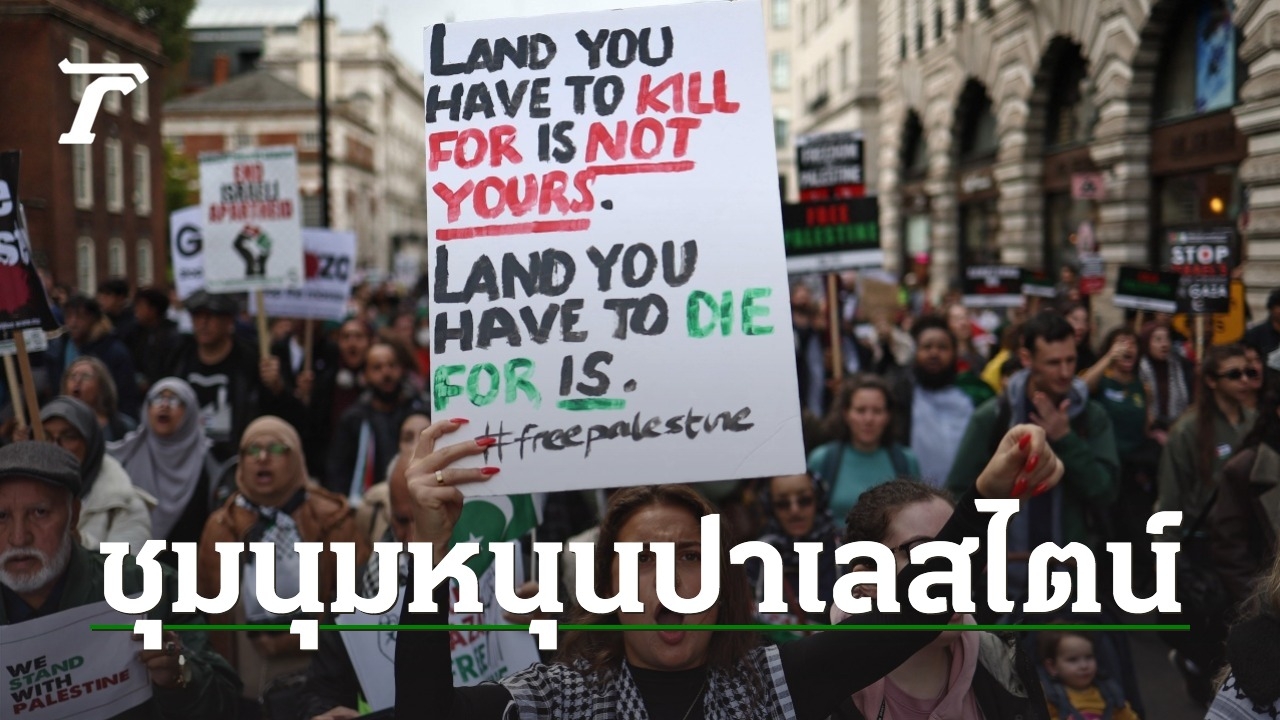 ผู้คนราว 100,000 คน เข้าร่วมการประท้วงสนับสนุนชาวปาเลสไตน์ในใจกลางกรุงลอนดอน เมื่อวันเสาร์ที่ (21 ต.ค.) เพื่อเรียกร้องให้มีการหยุดยิงทันทีในฉนวนกาซา ภายหลังกลุ่มฮามาสโจมตีอิสราเอลเมื่อสองสัปดาห์ก่อน