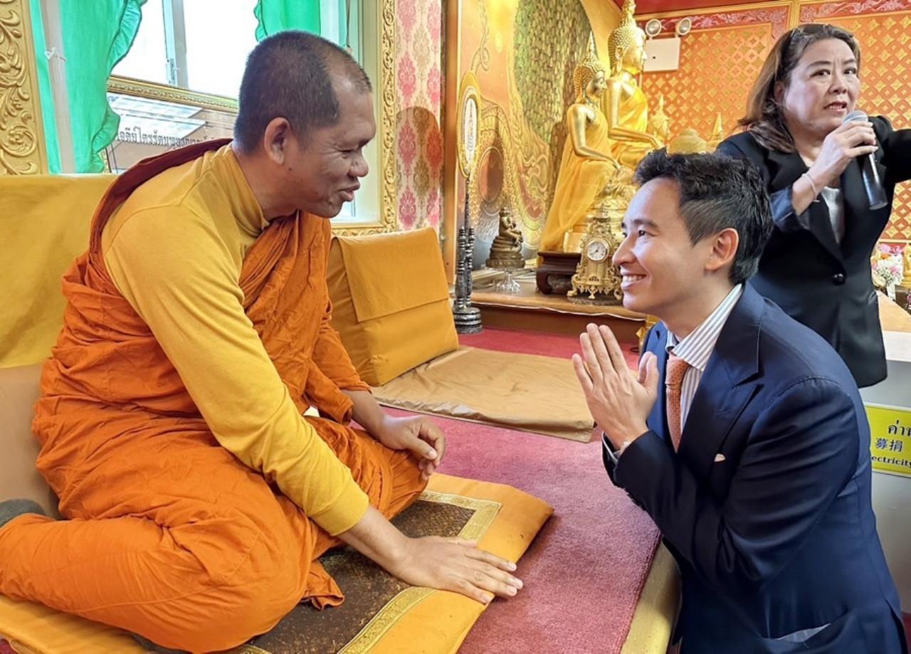 นายพิธา ยังได้เดินทางไปยัง วัดพุทธไทยถาวรวนาราม ซึ่งมีคนไทยประมาณ 400 กว่าคนรอต้อนรับ เต็มพื้นที่บริเวณลานหน้าศาลาอเนกประสงค์และในห้องโถงภายในวัดที่จัดเตรียมไว้ โดยนายพิธา ลิ้มเจริญรัตน์ ได้เข้านมัสการ พระครูวิทูรธรรมประกาศ เจ้าอาวาส และปราศรัยกับคนไทยที่มาคอยรอรับ ท่ามกลางบรรยากาศอบอุ่นเป็นกันเองและเต็มไปด้วยรอยยิ้มและเสียงหัวเราะ หลังจากนั้นในเวลา 14.00 น.ตามเวลาท้องถิ่น นายพิธาได้เดินทางไปเมืองบอสตัน.