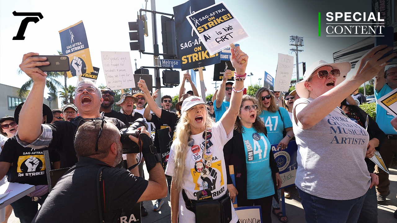 เหล่านักแสดงฮอลลูวูดเริ่มหยุดงานประท้วงในเดือนกรกฎาคม จากปัญหาเรื่องค่าตอบแทนที่ไม่เหมาะสมกับสภาพแวดล้อมของอุตสาหกรรมบันเทิงที่เปลี่ยนไป ตลอดจนการใช้ปัญญาประดิษฐ์ (AI) เพื่อเลียนแบบการแสดงของนักแสดง ไม่ว่าจะเสียงหรือใบหน้า