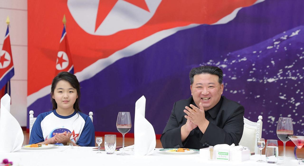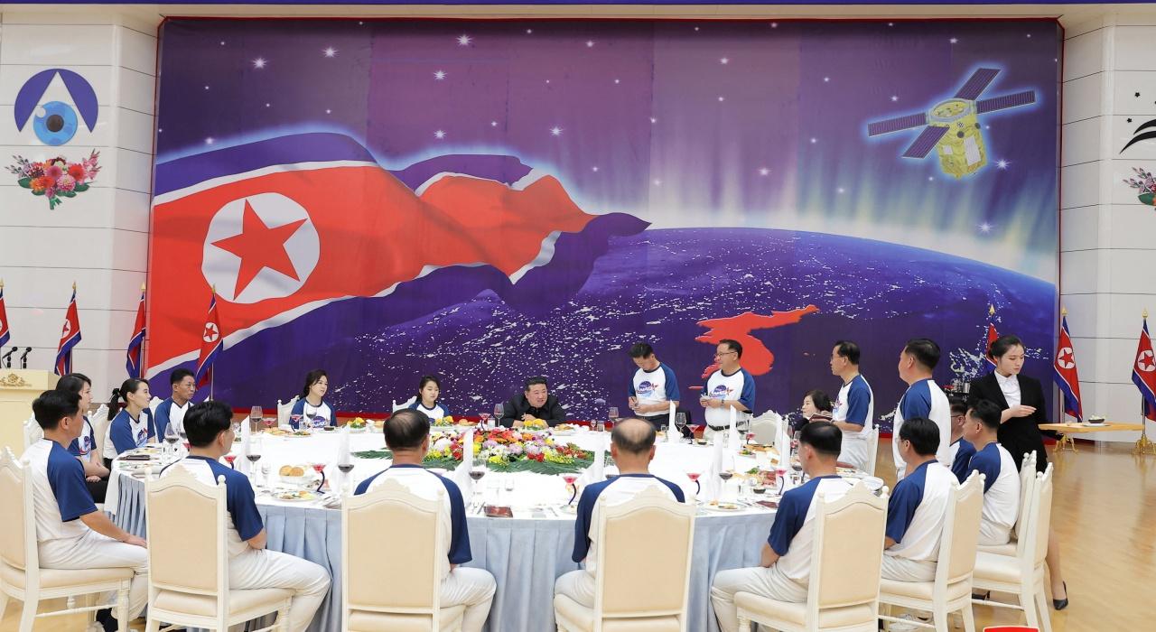นายคิม จองอึน ผู้นำสูงสุดของเกาหลีเหนือ จัดงานฉลองความก้าวหน้าด้านอวกาศร่วมกับลูกสาว และนักวิทยาศาสตร์ หลังจากที่เกาหลีเหนือสามารถส่งดาวเทียมจารกรรมของทหารไปอยู่ในวงโคจรได้สำเร็จ