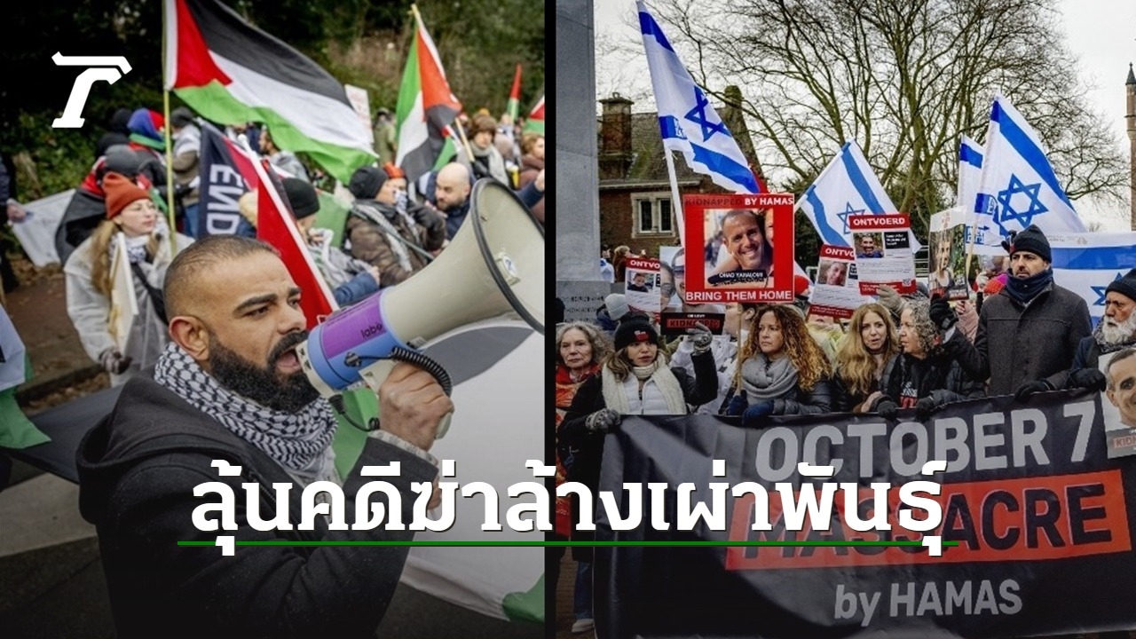 สำนักข่าวต่างประเทศรายงานว่า ฝ่ายสนับสนุนอิสราเอลกับกลุ่มผู้สนับสนุนปาเลสไตน์จำนวนมาก ออกมาชุมนุมที่หน้าศาลยุติธรรมระหว่างประเทศ (ICJ) ในกรุงเฮก ของเนเธอร์แลนด์ เมื่อวันพฤหัสบดีที่ 11 ม.ค. 2567 หลังศาลเริ่มการพิจารณาคดีฆ่าล้างเผ่าพันธุ์ชาวกาซา ที่แอฟริกาใต้ยื่นฟ้องร้อง และต้องการให้อิสราเอลยุติปฏิบัติการทางทหารทันที