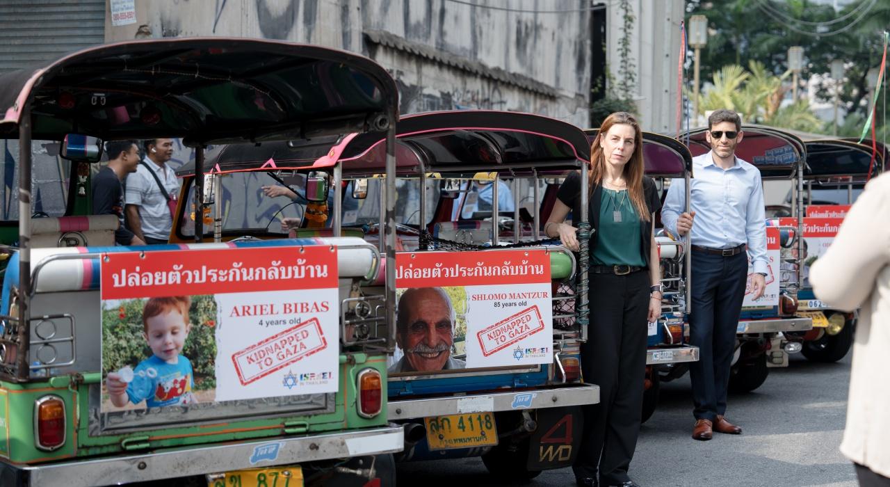 สถานเอกอัครราชทูตอิสราเอลประจำประเทศไทย ระดมรถตุ๊กๆ นับร้อย จัดกิจกรรมรณรงค์เรียกร้องให้ฮามาสปล่อยตัวประกันที่ยังถูกคุมตัวอยู่ในฉนวนกาซาในทันที
