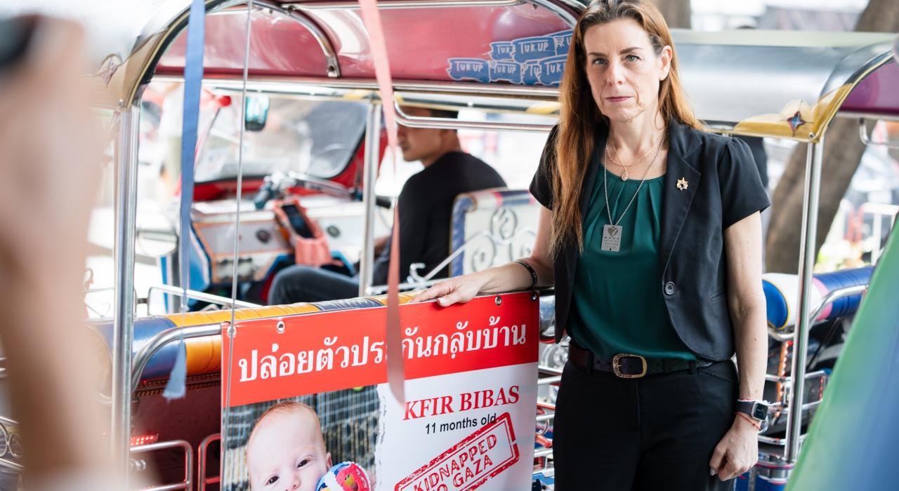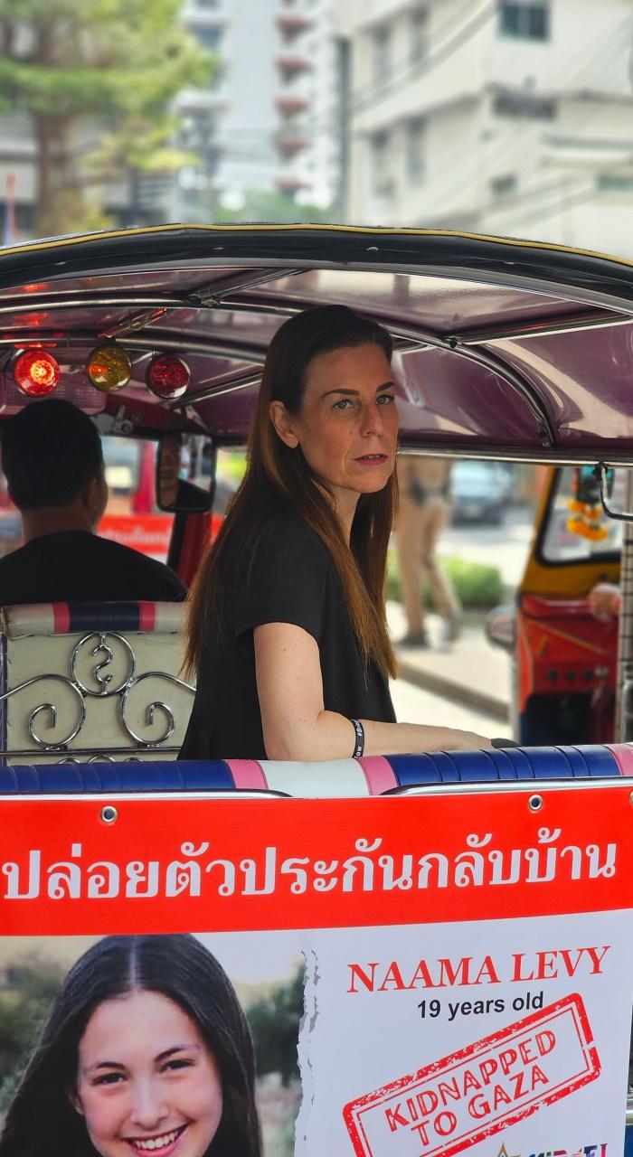 สำหรับกิจกรรมเมื่อวานนี้ มีการใช้รถตุ๊กๆ ติดภาพใบหน้าของตัวประกัน สัญจรไปตามถนนสายหลักในกรุงเทพฯ โดยมีโปสเตอร์ทั้งภาษาไทยและอังกฤษ เรียกร้องให้ปล่อยตัวประกันที่ถูกจับไปโดยกลุ่มฮามาส