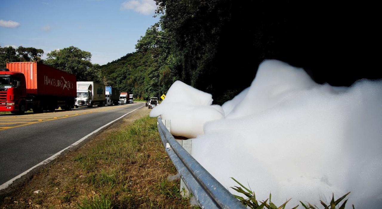 เกิดอุบัติเหตุรถบรรทุกสารเคมีพลิกคว่ำในบราซิล ก่อนที่สารซัลโฟนิกที่บรรทุกมาจะไหลลงสู่แม่น้ำเป็นเหตุให้เกิดโฟมสีขาวลอยปนเปื้อนเต็มแม่น้ำ เจ้าหน้าที่ต้องเร่งบำบัดน้ำเสีย