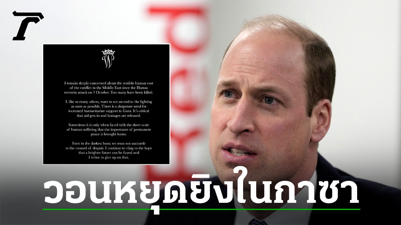 เจ้าชายวิลเลียมทรงออกแถลงการณ์ เรียกร้องให้หยุดสู้รบในฉนวนกาซาทันที ด้านรบ.อิสราเอลออกมาแสดงความเห็นทันที ชี้อิสราเอลต้องการหยุดยิงเร็วที่สุดเท่าที่จะเป็นไปได้ หากฮามาสปล่อยตัวประกันที่เหลือทั้งหมดและยุบกองกำลังติดอาวุธ