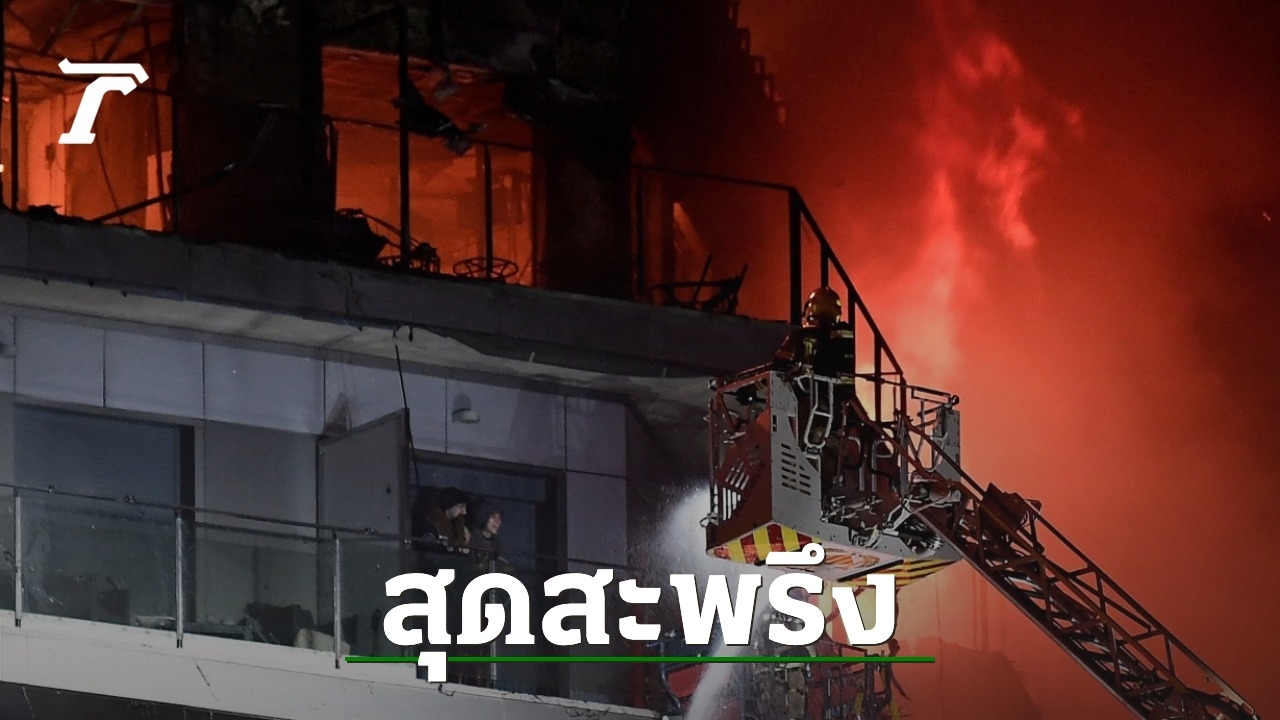 เปิดนาทีชีวิต ผู้คนหนีตาย ไฟโหมไหม้อพาร์ตเมนต์สูง 14 ชั้น ในเมืองบาเลนเซีย ประเทศสเปน จนต้องตัดสินใจกระโดดจากระเบียงตึกสูงลงมาที่เบาะกู้ภัยเคลื่อนที่