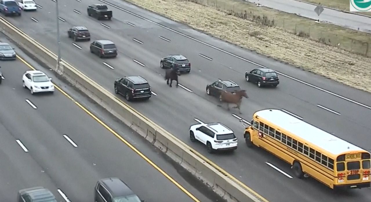 เกิดเหตุโกลาหลบนทางหลวงเชื่อมต่อระหว่างสหรัฐฯ เมื่อมีม้า 2 ตัว หลุดออกมาวิ่งป่วนอยู่กลางถนน จนทำให้รถแต่ละคันต้องจอดรอม้า ส่งผลให้การจราจรติดขัดยาว