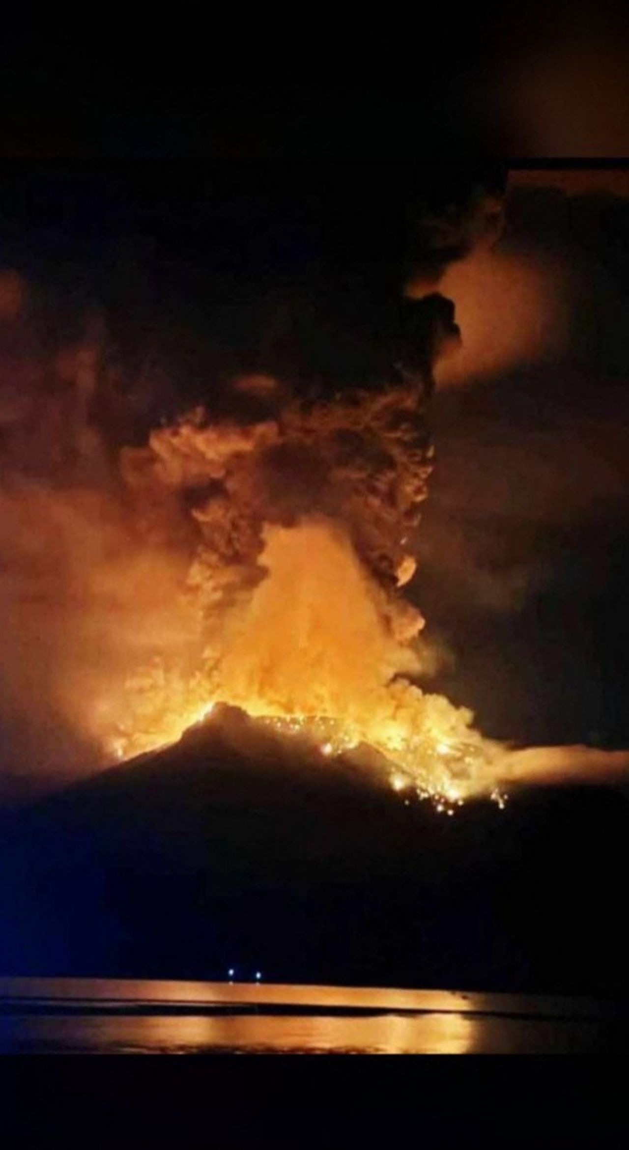 ขณะที่ทางการท้องถิ่นได้ยกระดับเตือนภัยขึ้นเป็นระดับสูงสุดอันดับ 2 หลังพบการเคลื่อนไหวอย่างต่อเนื่องบริเวณปากปล่อง และคาดว่าน่าจะเกิดการปะทุมากขึ้นอีก โดยขณะนี้ลาวาได้ไหลลงไปตามทางลาดเขา ก่อนจะปะทะกับน้ำเบื้องล่าง