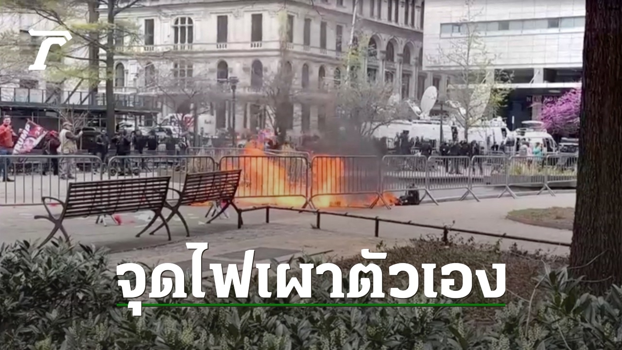 เกิดเหตุชายวัยกลางคนรายหนึ่งจุดไฟเผาตนเองด้านนอกศาลอาญาในนครนิวยอร์ก ซึ่งกำลังมีการพิจารณาคดีประวัติศาสตร์เรื่องเงินปิดปากที่พัวพันดาราหนังผู้ใหญ่กับอดีตประธานาธิบดีโดนัลด์ ทรัมป์