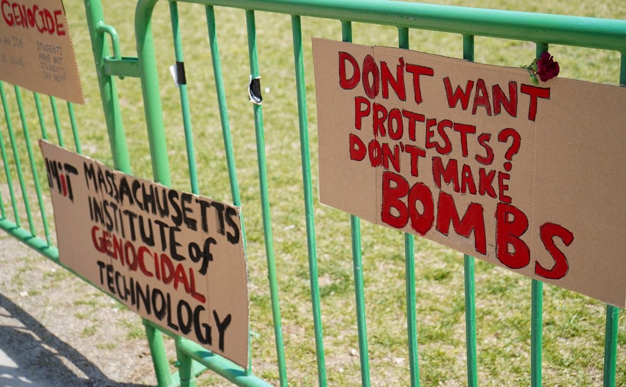 ที่มหาวิทยาลัยปรินซ์ตัน ผู้ประท้วงต้องการให้ มหาวิทยาลัยชื่อดัง 8 แห่งของสหรัฐฯ หรือที่เรียกรวมๆ ว่า ‘Ivy League’ ยุติการวิจัยอาวุธสงครามที่อาจถูกนำไปใช้ทำให้เกิดการฆ่าล้างเผ่าพันธุ์ด้วย