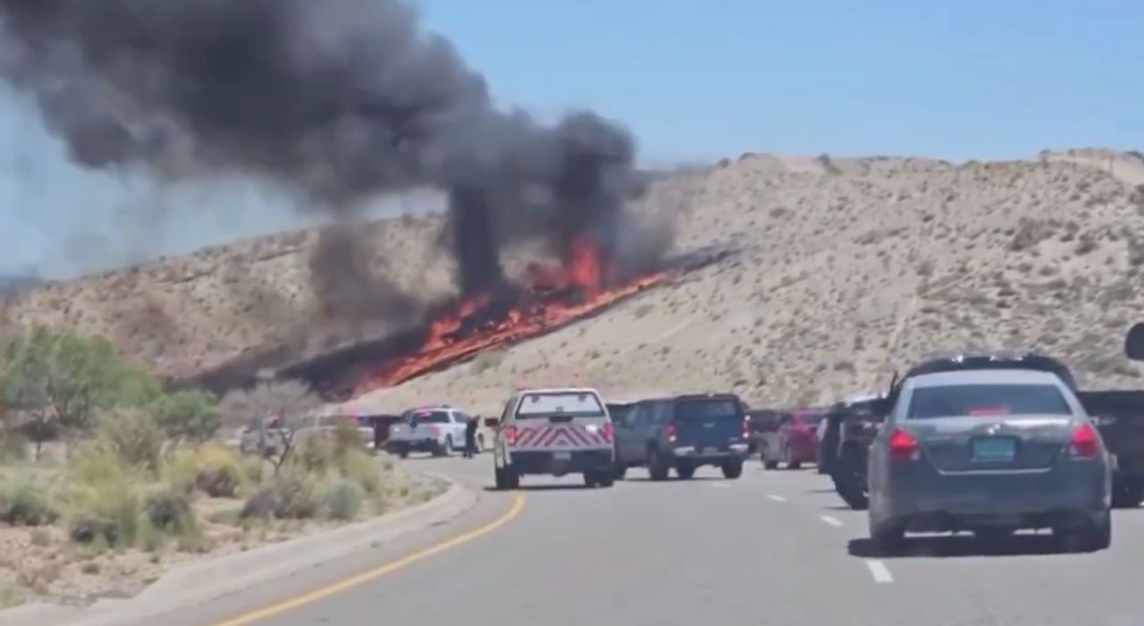 โดยคลิปวิดีโอของหน่วยดับเพลิงเมืองแอลบูเคอร์คีที่มีการเผยแพร่ในเอ็กซ์ แสดงให้เห็นเครื่องบินถูกไฟลุกไหม้จนดำเป็นตอตะโกอยู่บนเนินเขา ฝั่งใต้ของสนามบิน
