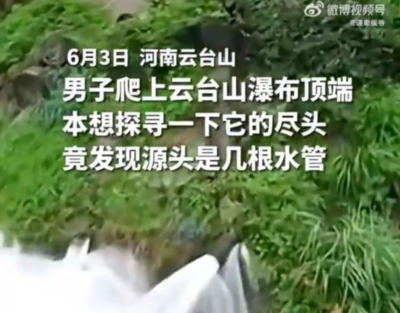 คลิปไวรัลถูกแชร์กระจายในโซเชียลมีเดียของจีน เผยให้เห็น น้ำตกหยุนไถ น้ำตกชื่อดังในอุทยานแห่งชาติ มีการใช้ท่อปล่อยน้ำ ขณะที่ผู้จัดการอุทยานฯยอมรับ ปรับปรุงปริมาณน้ำตกเล็กน้อย ในช่วงหน้าแล้ง