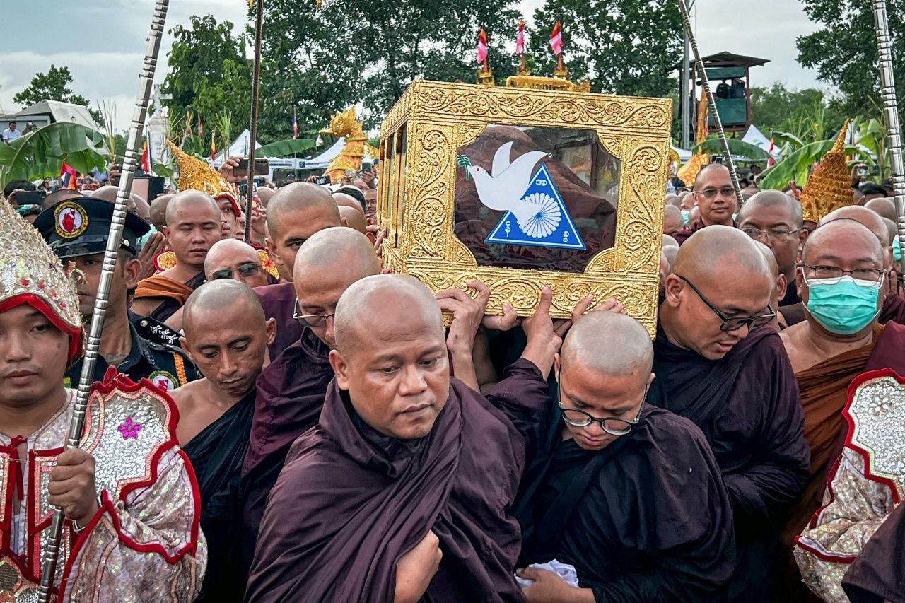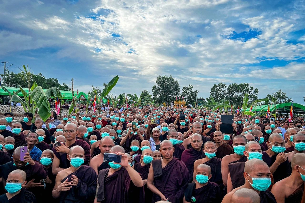 พระภิกษุ แม่ชี และชาวพม่าหลายพันคนสุดอาลัย หลั่งไหลร่วมพิธีศพพระอาจารย์ภัตทันตะ ท่ามกลางสายฝน หลังพระอาจารย์ภัตทันตะ ถูกทหาร รบ.พม่ายิงจนมรณภาพ