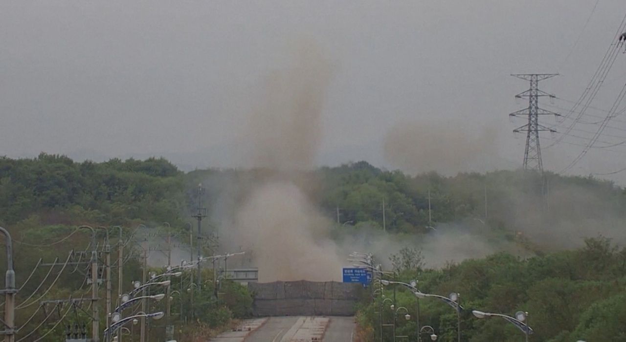 ความสัมพันธ์เกาหลีเหนือและเกาหลีใต้ย่ำแย่ถึงขีดสุด หลังจากที่เกาหลีเหนือประกาศตัดเส้นทางเชื่อมต่อระหว่างกันไม่ว่าจะเป็นทางรถไฟ หรือทางถนน โดยกองทัพเกาหลีใต้ได้เผยคลิปวินาทีที่เกาหลีเหนือจุดระเบิดถนนเชื่อมต่อระหว่างสองเกาหลีวานนี้ โดยจะเห็นกลุ่มควันขนาดใหญ่ลอยคละคลุ้งจากแรงระเบิด จากนั้นก็มีรถบรรทุกหลายคันและรถแบคโฮมาขุดถนนดังกล่าวให้เป็นหลุมลึกลงไป เพื่อตัดเส้นทางอย่างถาวรไม่ให้รถสามารถแล่นข้ามไปมาได้ ท่ามกลางกำลังทหารเกาหลีเหนือที่มาคอยรักษาความปลอดภัยอย่างเข้มงวด ซึ่งทันทีที่เกิดการระเบิดขึ้นทางกองทัพเกาหลีใต้ได้มีการยิงปืนเตือน แม้ว่าเหตุระเบิดดังกล่าวจะไม่ได้สร้างความเสียหายให้แก่เกาหลีใต้แต่อย่างใด