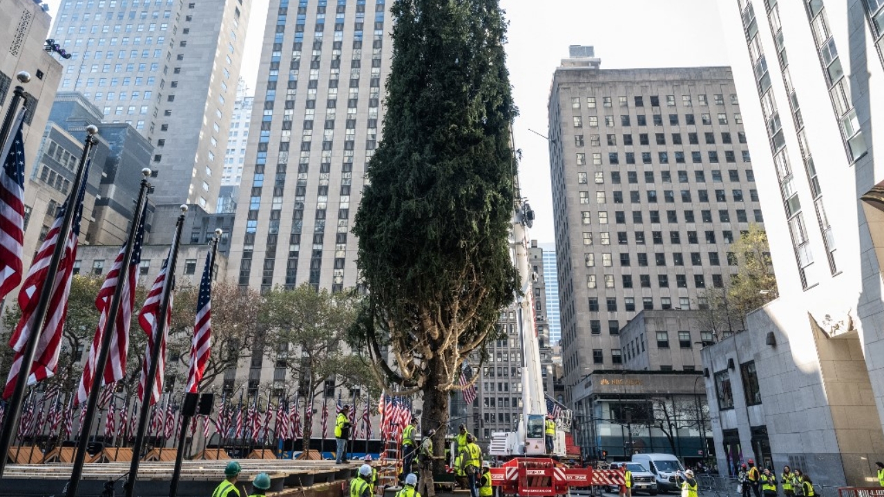 เจ้าหน้าที่เริ่มขนย้ายและติดตั้งต้นสนนอร์เวย์ ความสูง 22.5 เมตร ที่จะถูกเรียกว่า ต้นคริสต์มาส "ร็อกกี้เฟลเลอร์ เซนเตอร์" ซึ่งถือเป็นสัญญาณการเริ่มต้นเข้าสู่เทศกาลวันหยุดวันหยุดปลายปี
