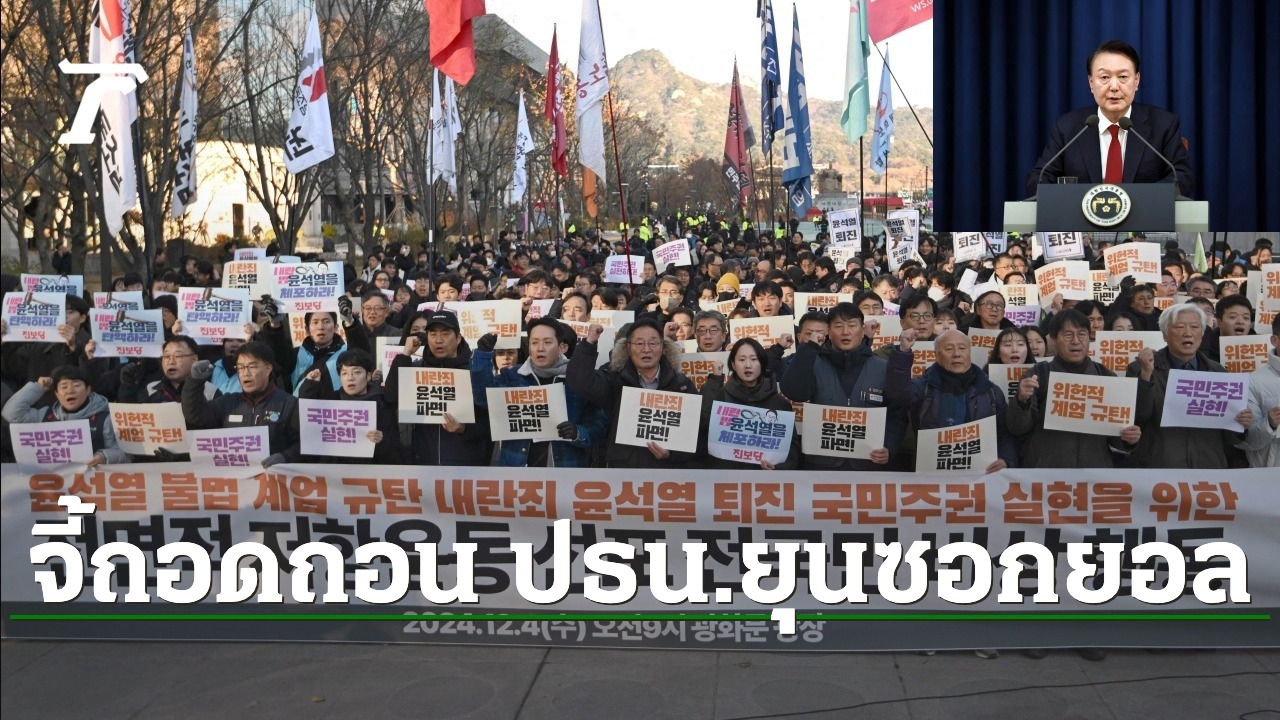 พรรคประชาธิปไตย ซึ่งเป็นพรรคฝ่ายค้านหลัก เรียกร้องให้นายยุน ซึ่งดำรงตำแหน่งมาตั้งแต่ปี 2022 ลาออก มิฉะนั้นจะถูกถอดถอนจากตำแหน่งจากการประกาศกฎอัยการศึก ซึ่งถือเป็นครั้งแรกในเกาหลีใต้นับตั้งแต่ปี 1980