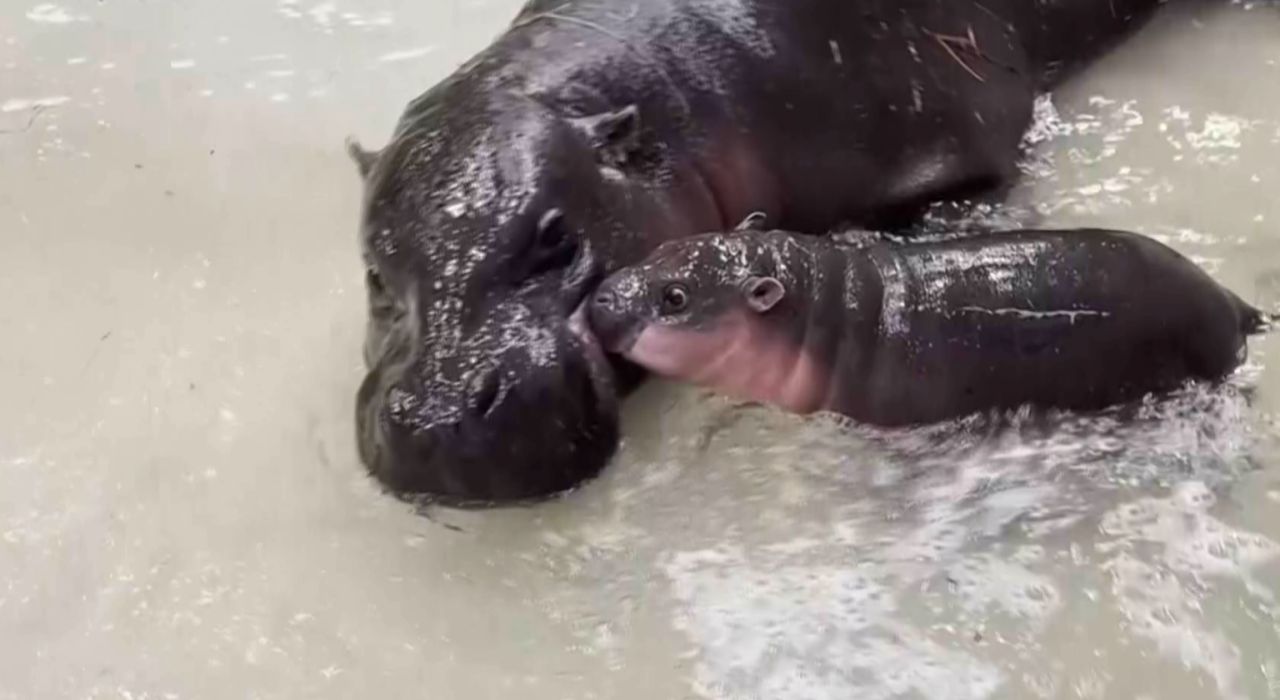 สวนสัตว์รัฐเวอร์จิเนียของสหรัฐฯ พาลูกฮิปโปแคระน้อยเกิดใหม่ไปลงเล่นน้ำในส่วนจัดแสดงเป็นครั้งแรก ซึ่งลีลาเจ้าตัวน้อยดีดเด้งน่าเอ็นดูไม่แพ้เจ้าหมูเด้งอยู่เหมือนกัน