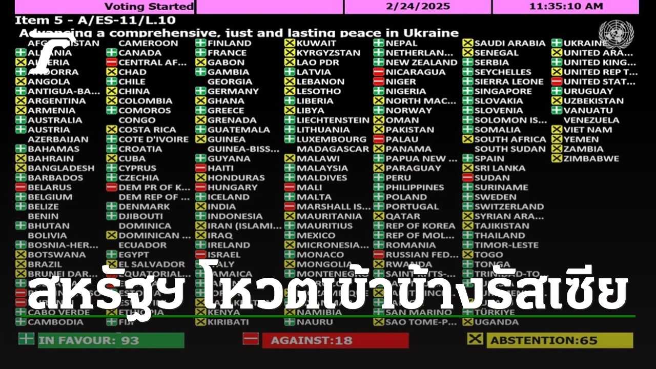 สหรัฐฯ เข้าข้างรัสเซียถึงสองครั้งในการลงมติที่สหประชาชาติ เพื่อรำลึกครบรอบ 3 ปีการรุกรานยูเครนของรัสเซีย โดยเน้นถึงการเปลี่ยนจุดยืนของรัฐบาลโดนัลด์ ทรัมป์ เกี่ยวกับสงคราม