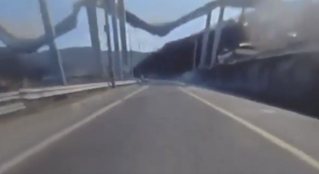 โลกโซเชียลเผยคลิปเหตุการณ์สะพานยกระดับพังถล่มลงมาอย่างรุนแรง ทำให้เกิดกลุ่มควันขนาดมหึมาลอยขึ้นสู่ท้องฟ้า ซึ่งเป็นคลิปจากกล้องหลังรถของรถยนต์คันหนึ่ง ที่ขับผ่านมาพอดี