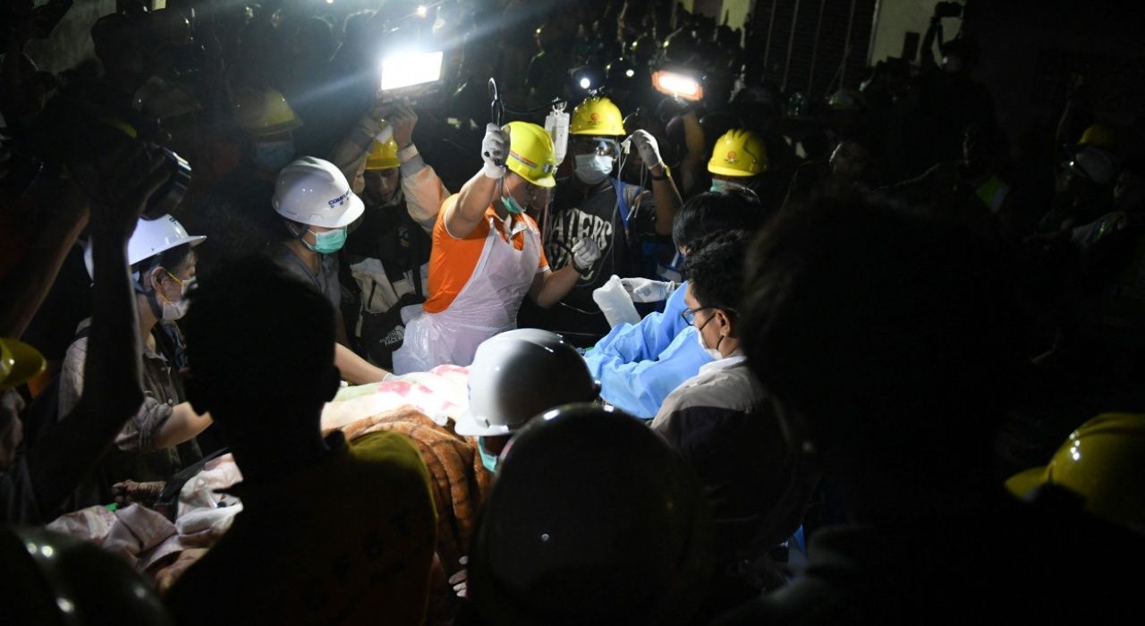เมื่อคืนวันเสาร์ หญิงชรารายหนึ่งได้รับการช่วยเหลือจากซากอาคารของโรงพยาบาล Ottara Thiri ในกรุงเนปิดอว์ หลังติดอยู่ใต้ซากปรักหักพังนานถึง 36 ชั่วโมง ภาพเหตุการณ์แสดงให้เห็นว่าเธอถูกเจ้าหน้าที่กู้ภัยจากจีนนำตัวขึ้นเปลหามไปยังรถพยาบาล ท่ามกลางเจ้าหน้าที่ฉุกเฉินที่อยู่โดยรอบ