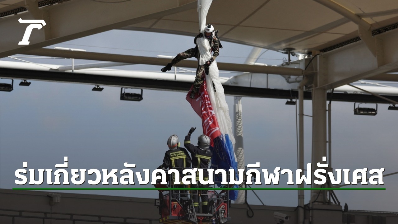 โดยหลังเกิดเหตุมีเจ้าหน้าที่ดับเพลิง 2 นาย ใช้กระเช้าจากรถดับเพลิงขึ้นไปช่วยนักกระโดดร่ม และเมื่อเจ้าหน้าที่สามารถดึงร่มส่วนสุดท้ายออกจากหลังคาได้สำเร็จ พวกเขาก็ได้รับเสียงปรบมืออย่างกึกก้องจากแฟน ๆ ซึ่งเจ้าหน้าที่เองก็โบกมือให้ผู้ชมอีกด้วย โดยมีรายงานว่านักกระโดดร่มรายนี้เป็นทหารฝรั่งเศส และดูเหมือนไม่ได้รับบาดเจ็บ
