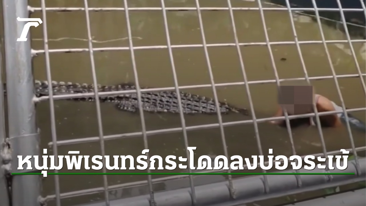 นักท่องเที่ยวฟิลิปปินส์เล่นพิเรนทร์ปีนเข้าไปในบ่อจระเข้ หวังโพสต์ท่าถ่ายรูปเซลฟี่ แต่กลับถูกจระเข้จู่โจมลากลงน้ำเกือบตาย