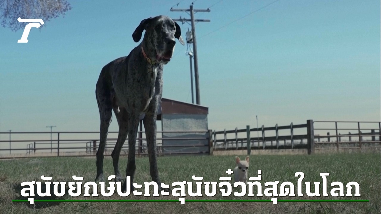 กินเนสเวิลด์เรคคอร์ดนัดจับคู่สุนัขที่ได้รับการรับรองว่าสูงที่สุดในโลกกับสุนัขที่ตัวเตี้ยที่สุดในโลกให้มาเจอกันเป็นครั้งแรก