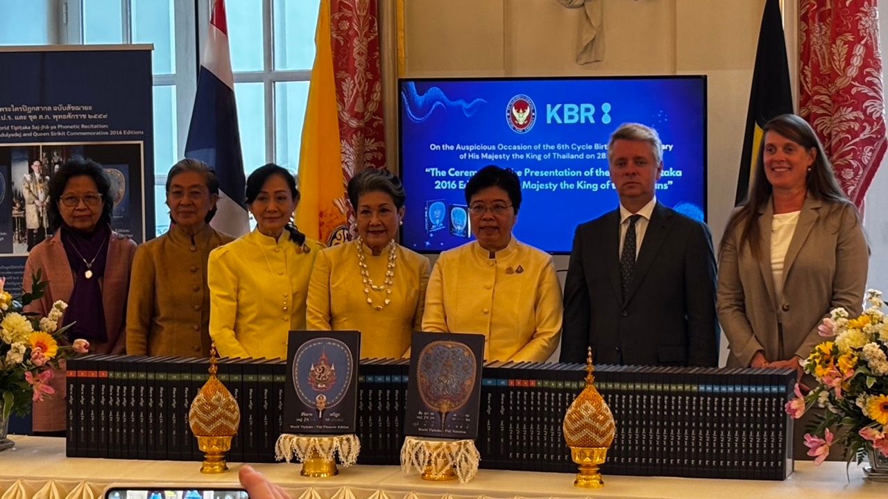 บุญธง ก่อมงคลกูล ผู้สื่อข่าวไทยรัฐประจำประเทศเบลเยียม รายงานว่า เมื่อวันที่ 15 พฤษภาคม 2568 ที่ Palace of the Prince of Lorraine สถานเอกอัครราชทูต ณ กรุงบรัสเซลส์ ร่วมกับมูลนิธิพระไตรปิฎกสากลและหอสมุดหลวงแห่งเบลเยียม จัดพิธีทูลเกล้าฯ ถวายพระไตรปิฎกสากล ฉบับเสียงสัชฌายะ ชุด ภ.ป.ร. และชุด ส.ก. พ.ศ. ๒๕๕๙ จำนวน ๒ ชุด ชุดละ 40 เล่ม แด่สมเด็จพระราชาธิบดีฟิลิปป์แห่งเบลเยียม เนื่องในโอกาสพระราชพิธีมหามงคลเฉลิมพระชนมพรรษาพระบาทสมเด็จพระเจ้าอยู่หัว ทรงเจริญพระชนมพรรษา 6 รอบ 28 กรกฎาคม 2567 โดยมีคณะสงฆ์ไทย ผู้แทนสมเด็จพระราชาธิบดีฟิลิปป์ กระทรวงการต่างประเทศเบลเยียม คณะทูตานุทูตประเทศที่นับถือพระพุทธศาสนาในกรุงบรัสเซลส์ ทีมประเทศไทยกรุงบรัสเซลส์ และชุมชนไทยในเบลเยียมเข้าร่วมงาน