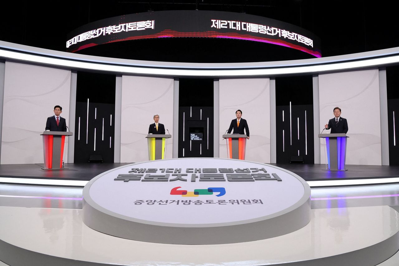 - ผลสำรวจระบุว่า นายอี แจ-มยอง จากพรรคประชาธิปไตย ซึ่งเป็นพรรคฝ่ายค้านหลัก เป็นตัวเต็งจากผู้สมัคร 6 คน รองลงมาคือ นายคิม มุนซู จากพรรคพลังประชาชน (PPP) ที่เป็นรัฐบาล นายอีได้รับการยกย่องจากผู้สนับสนุนว่าเป็นฮีโร่ของชนชั้นแรงงาน เขาเคยทำงานในโรงงานก่อนที่จะกลายมาเป็นทนายความด้านสิทธิมนุษยชนและนักการเมือง เขาให้คำมั่นว่าจะก่อตั้ง "สาธารณรัฐเกาหลีที่แท้จริง" ที่ประชาชนมีงานทำและสังคมที่ยุติธรรม