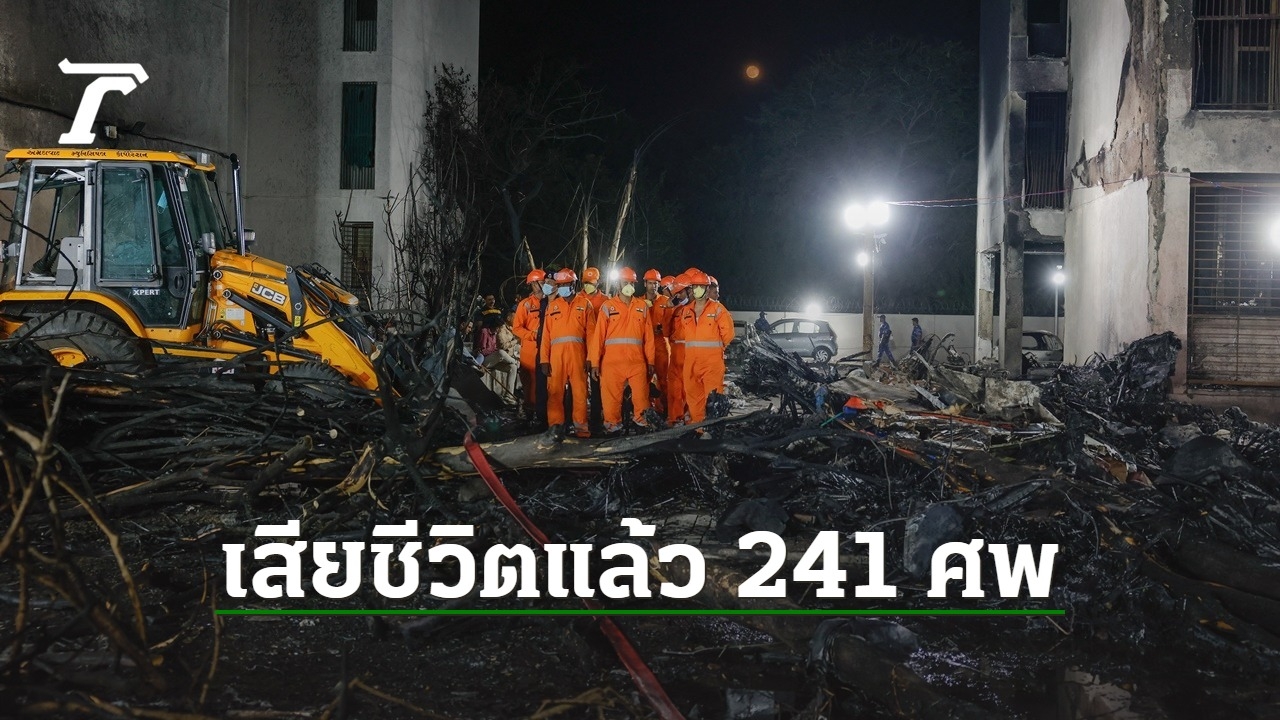 แอร์อินเดีย ยืนยันว่า เหตุเครื่องบินตกในเมืองอาห์เมดาบัด ทำให้ผู้โดยสารและลูกเรือเสียชีวิต 241 ศพ รอดชีวิต 1 ราย ขณะที่ปฏิบัติการกู้ภัยของเจ้าหน้าที่อินเดียเสร็จสิ้นแล้ว