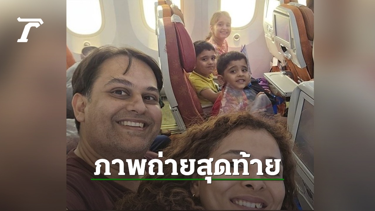 ชาวอินเดียแห่ไว้อาลัย ครอบครัวหมออินเดีย 5 ชีวิต พ่อแม่และลูกอีก 3 คน ที่เสียชีวิตทั้งครอบครัวหลังขึ้นเครื่องบิน "แอร์ อินเดีย" เพื่อหวังไปเริ่มชีวิตใหม่ที่ลอนดอน และได้ถ่ายรูปนี้ไว้ก่อนเครื่องบินจะขึ้น