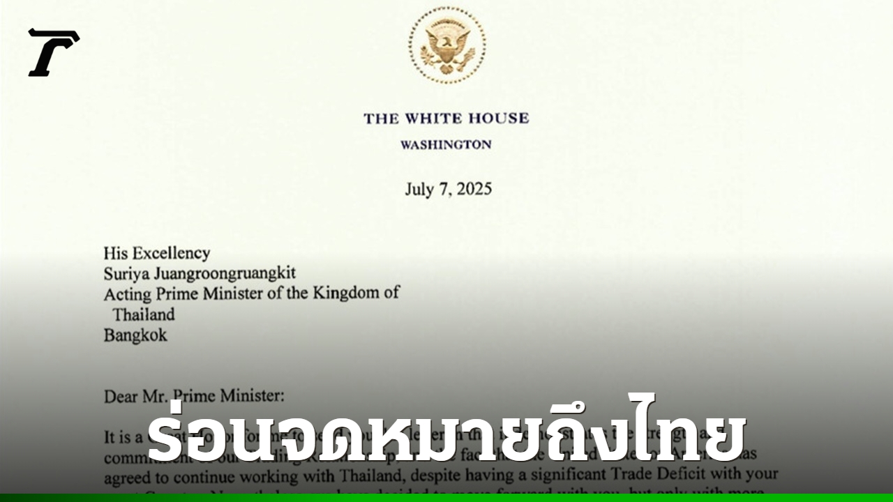 จดหมายของสหรัฐฯ ที่ส่งถึงไทยมีเนื้อความดังนี้