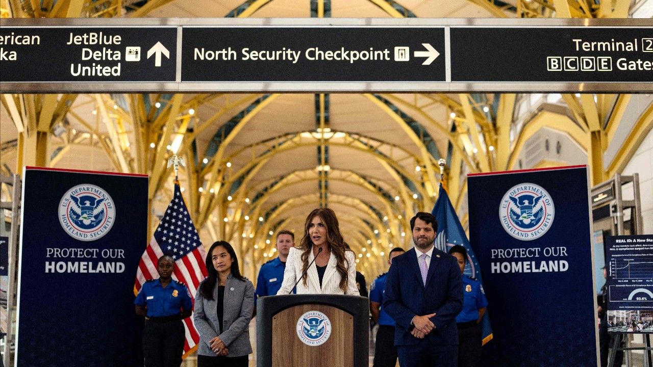 รัฐมนตรีกระทรวงความมั่นคงแห่งมาตุภูมิ คริสตี โนเอ็ม แถลงข่าวที่สนามบินนานาชาติโรนัลด์ เรแกน ในกรุงวอชิงตัน ประกาศเปลี่ยนแปลงระเบียบของสำนักงานรักษาความปลอดภัยการขนส่งแห่งสหรัฐฯ (TSA) โดยผู้โดยสารในสนามบินทั่วสหรัฐฯ จะไม่ต้องถอดรองเท้าขณะผ่านจุดตรวจความปลอดภัยอีกต่อไป
