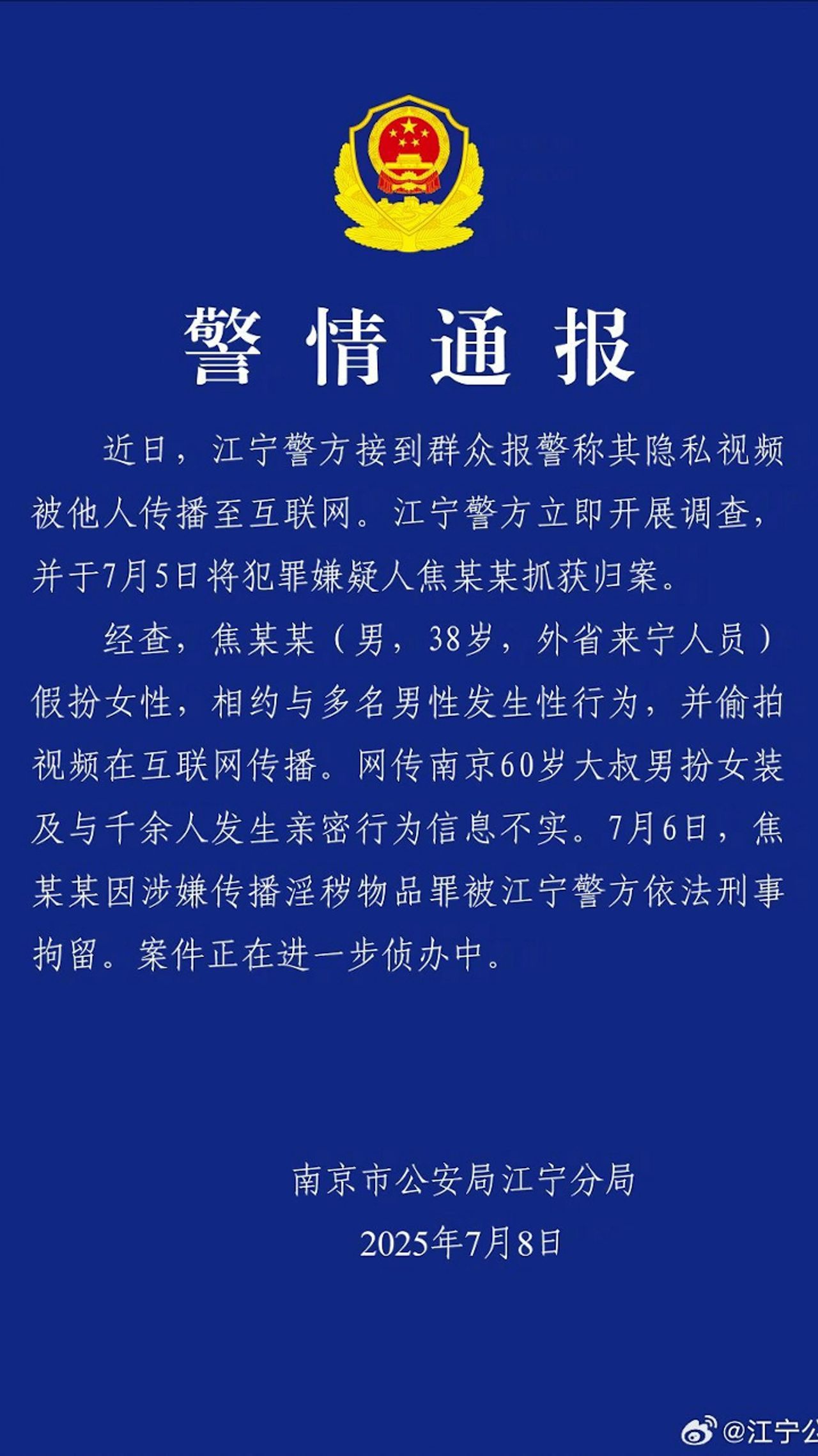 สำหรับความคืบหน้าทางคดี ตำรวจเจียงหนิงได้จับกุมตัวเจ๊หงส์หรือนายเจียววัย 38 ปีแล้ว ในข้อหาเผยแพร่สื่อลามกอนาจาร เมื่อวันที่ 5 กรกฎาคมที่ผ่านมา ก่อนจะออกแถลงการณ์เรื่องดังกล่าวเมื่อ 8 กรกฎาคมที่ผ่านมา โดยระบุว่าจำนวนตัวเลขของคนที่มีสัมพันธ์กับเจ๊หงส์ที่ระบุว่ามีถีง 1,600 กว่ารายนั้นเป็นตัวเลขเกินจริง โดยคดียังอยู่ระหว่างการสอบสวน อย่างไรก็ตาม หากนายเจียวเป็นโรคติดต่อทางเพศสัมพันธ์จริง ๆ แล้วแพร่เชื้อให้คนอื่น อาจเข้าข่ายความผิดฐานเป็นอันตรายต่อความปลอดภัยสาธารณะ และมีโทษสูงสุดคือประหารชีวิตตามกฎหมายด้วย โดยยังไม่มีรายงานความคืบหน้าว่าเขาได้รับการปล่อยตัว หรือจะต้องขึ้นศาลตัดสินคดีเมื่อใด.