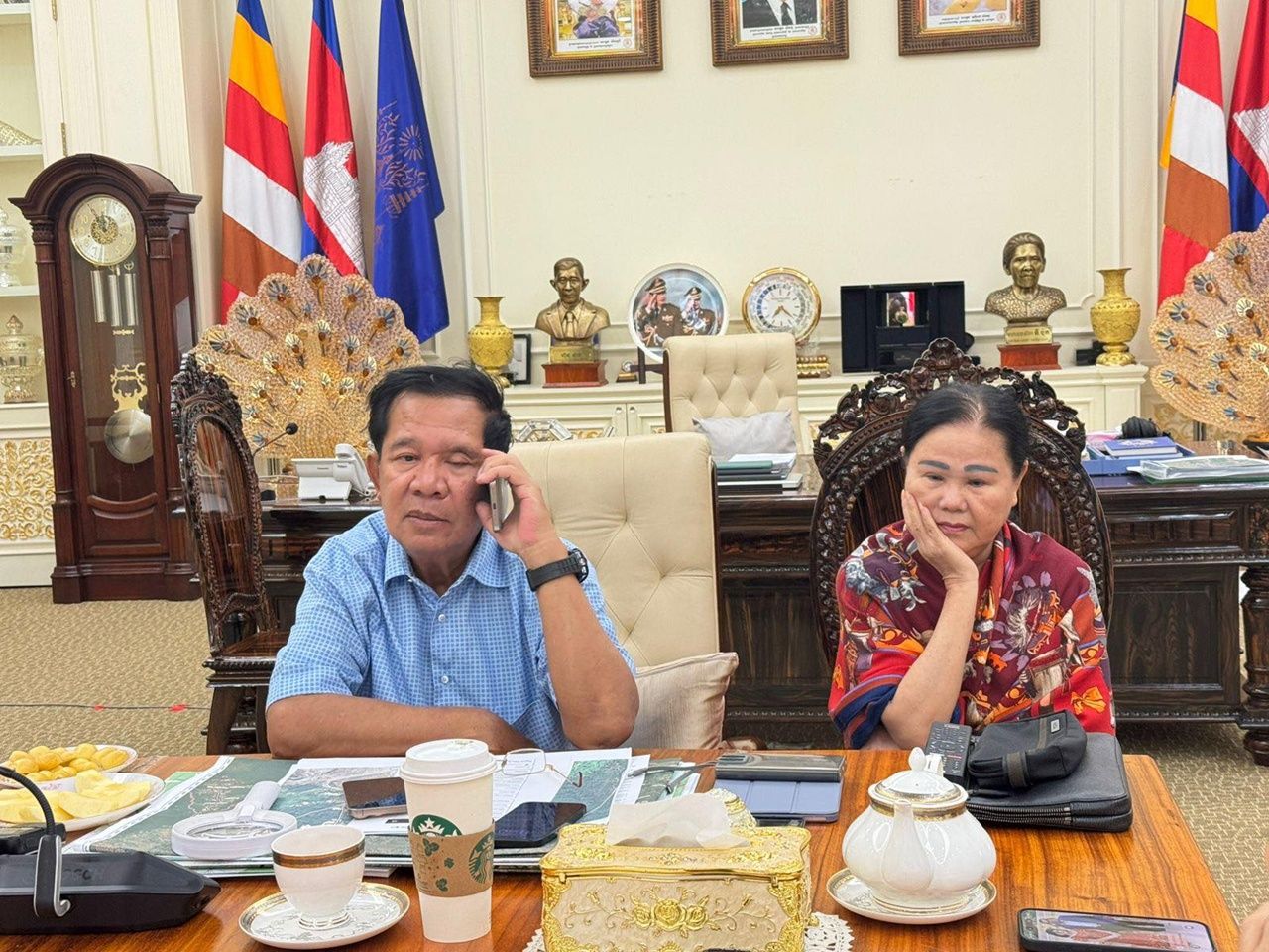 เมื่อช่วงเช้ามืดวันจันทร์ที่ 4 ส.ค. 2568 เฟซบุ๊กของ สมเด็จฯ ฮุน เซน ประธานวุฒิสภากัมพูชา เผยแพร่รูปภาพชุดใหม่ แสดงให้เห็นอดีตผู้นำกัมพูชานั่งอยู่ที่โต๊ะทำงานร่วมกับภรรยาและเจ้าหน้าที่คนอื่นๆ โดยระบุว่า พวกเขากำลังติดตามสถานการณ์ในแนวหน้าอย่างแข็งขัน และเฝ้าระวังเผื่อฝ่ายไทยละเมิดข้อตกลงหยุดยิง