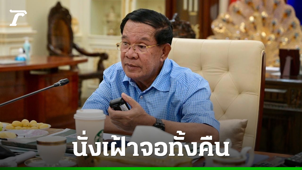 เฟซบุ๊ก ฮุน เซน โพสต์รูปใหม่ จิบกาแฟนั่งเฝ้าจอที่โต๊ะทำงาน ร่วมกับเจ้าหน้าที่คนอื่นๆ เพื่อติดตามสถานการณ์ชายแดน ก่อนกัมพูชา-ไทยประชุม GBC ในวันจันทร์