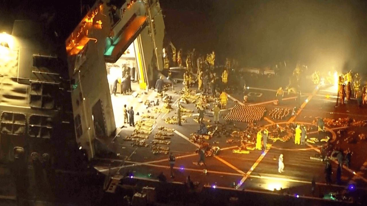 มีรายงานว่านาวิกโยธินบนเรือได้รับความช่วยเหลือจากทีมเรือ USS San Diego ซึ่งเป็นเรือรบอีกลำของสหรัฐฯ ที่บรรทุกทหารและอากาศยาน รวมถึงยังได้รับการสนับสนุนจากกองกำลังชายฝั่งและกองทัพญี่ปุ่นในการอพยพคนและควบคุมเพลิงด้วย