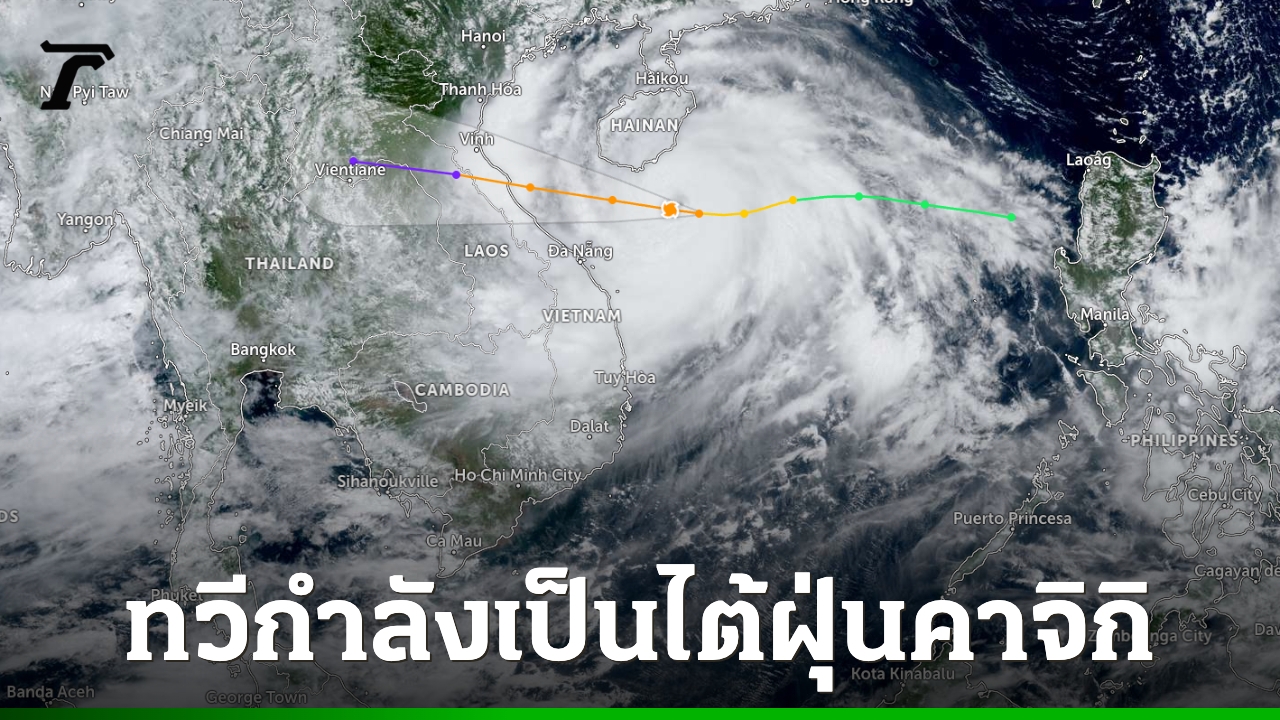 พายุโซนร้อน "คาจิกิ" บริเวณทะเลจีนใต้ ได้ทวีกำลังเป็นพายุไต้ฝุ่น คาดว่าจะเคลื่อนตัวเข้าสู่เวียดนามวันจันทร์นี้ และจะอ่อนกำลังลงเป็นพายุดีเปรสชันเมื่อเคลื่อนตัวเข้าสู่ จ. น่าน ในวันอังคาร