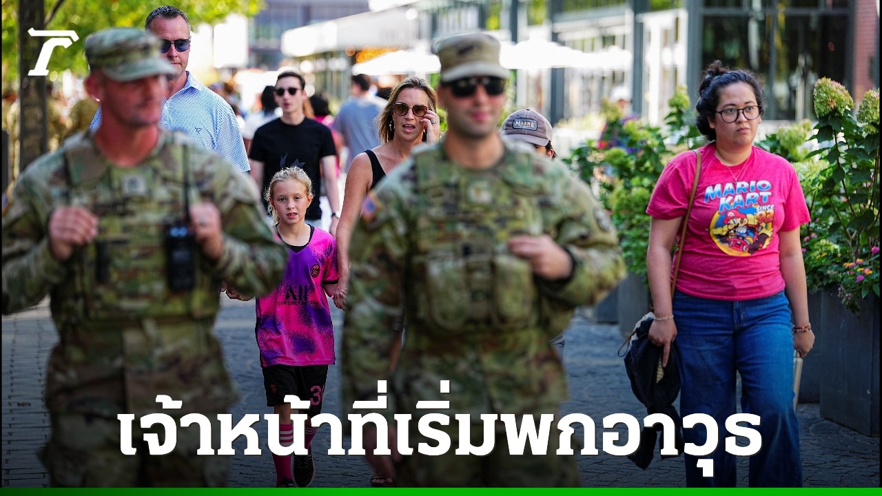 เจ้าหน้าที่กองกำลังพิทักษ์มาตุภูมิของสหรัฐฯ ซึ่งลาดตระเวนตามท้องถนนในกรุงวอชิงตัน ดี.ซี. ตามนโยบายปราบปรามอาชญากรรมของประธานาธิบดีโดนัลด์ ทรัมป์ ได้เริ่มพกพาอาวุธแล้ว