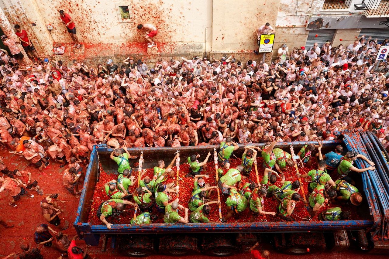 เมืองบูญอล ทางตะวันออกของสเปนเต็มไปด้วย เสียงหัวเราะ เสียงกรี๊ด และคราบสีแดงสดจากมะเขือเทศกว่า 120 ตัน ที่ปกคลุมทั้งถนนและร่างกายนักท่องเที่ยวกว่า 20,000 คน ที่มาร่วมงานเทศกาล "ลา โทมาตินา" งานปามะเขือเทศที่ยิ่งใหญ่ที่สุดในโลก ซึ่งจัดขึ้นเมื่อวันพุธที่ผ่านมา