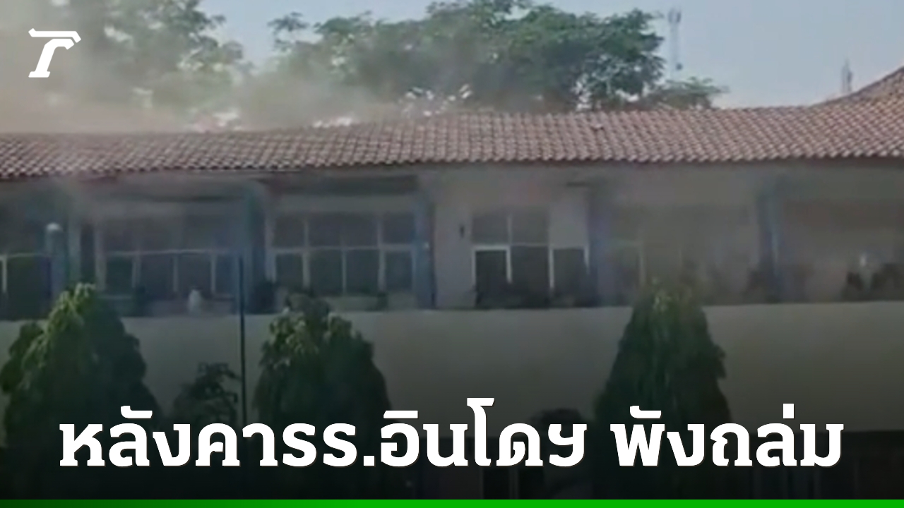 ขณะที่คลิปจากภายในอาคารแสดงให้ถล่มลงมาทับโต๊ะเก้าอี้นักเรียน โดยรายงานระบุว่ามีห้องเรียนที่ได้รับผลกระทบอย่างน้อย 4 ห้อง