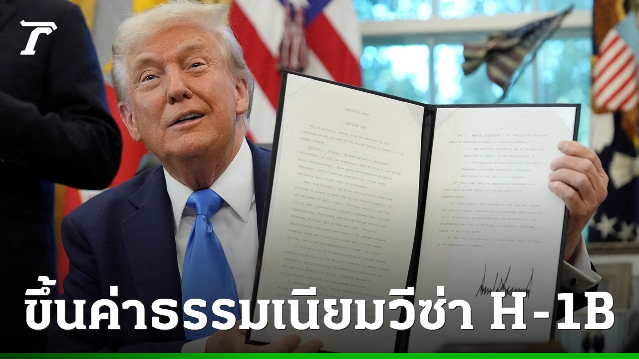 โดนัลด์ ทรัมป์ ลงนามคำสั่งขึ้นค่าธรรมเนียมผู้สมัครวีซ่า H-1B สำหรับแรงงานทักษะสูงเป็น 100,000 ดอลลาร์สหรัฐต่อปี บีบบริษัทต่างๆ ใช้คนอเมริกันแทน