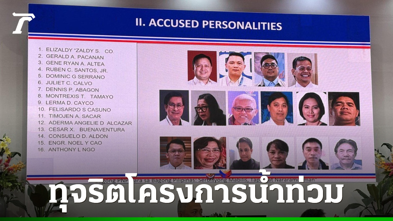 ทางการฟิลิปปินส์รวบ 7 ผู้ต้องสงสัย และอยู่ระหว่างตามล่าอีกหลายราย ในคดีทุจริตโครงการป้องกันน้ำท่วมมูลค่านับแสนล้านบาท ด้านประธานาธิบดีเฟอร์ดินานด์ มาร์กอส จูเนียร์ ลั่นจะดำเนินคดีนักการเมืองและเจ้าของบริษัทก่อสร้างที่เกี่ยวข้องทั้งหมด ก่อนช่วงคริสต์มาส เพื่อดับความโกรธแค้นของประชาชน