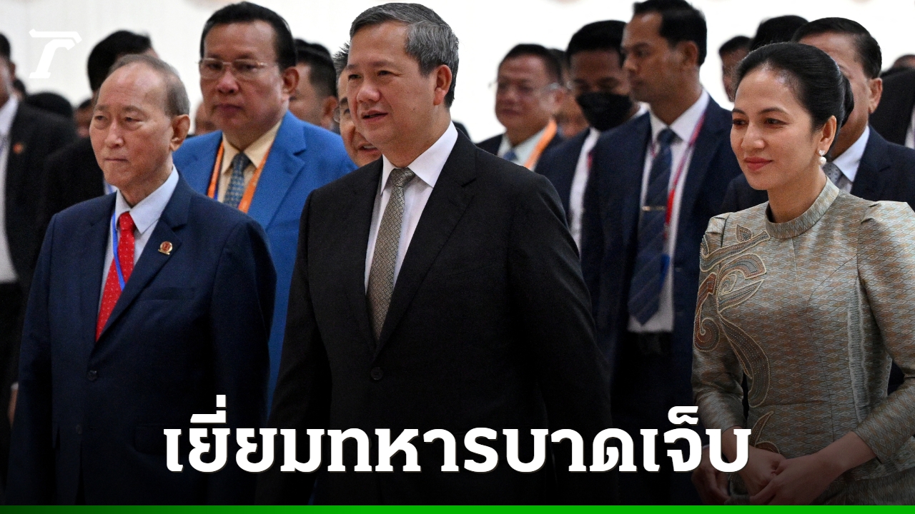 นายกรัฐมนตรี “ฮุน มาเนต” ของกัมพูชา พร้อมภริยา ไปเยี่ยมให้กำลังใจทหารและตำรวจที่ได้รับบาดเจ็บจากการสู้รบตามแนวชายแดน ซึ่งถูกส่งตัวไปรักษาต่อในกรุงพนมเปญ ยกย่องความกล้าหาญพร้อมขอบคุณทีมแพทย์