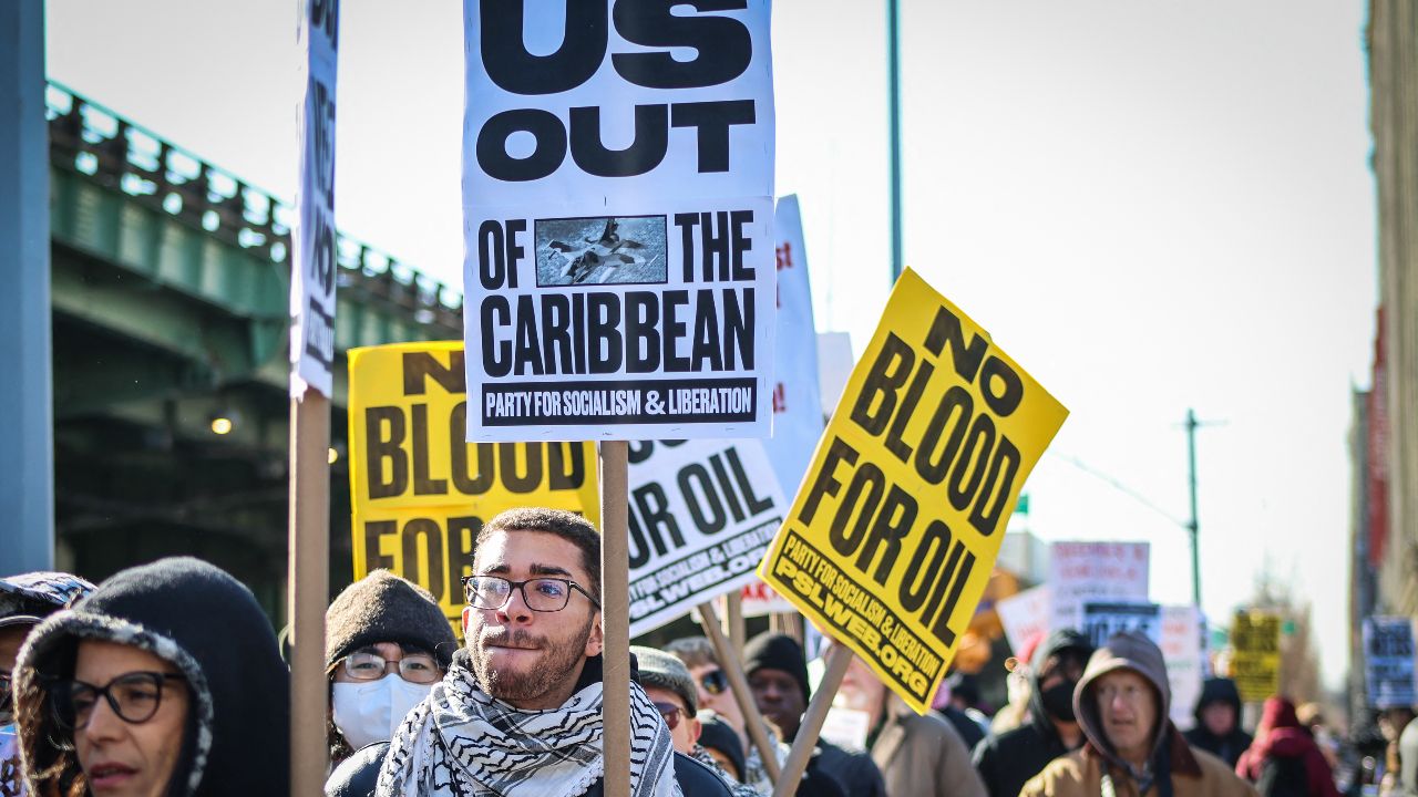 โดยผู้ประท้วงตะโกนถ้อยคำที่สะท้อนความไม่พอใจต่อท่าทีแข็งกร้าวของรัฐบาลสหรัฐฯ โดยชี้ว่าประธานาธิบดีสหรัฐฯ ไม่มีสิทธิ์ดำเนินการทางทหารฝ่ายเดียวต่อประเทศอื่น หรือควบคุมตัวผู้นำของประเทศนั้น และพวกเขามองว่าสิ่งที่เกิดขึ้นเป็นเรื่องผิดกฎหมาย ขณะเดียวกันก็ไม่ต้องการเห็นสงครามครั้งใหม่เกิดขึ้นอีก