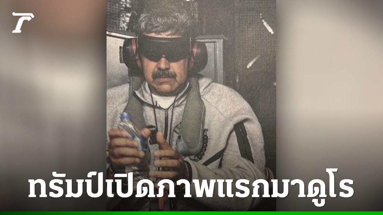 ทรัมป์เผยภาพแรกหลัง “นิโกลัส มาดูโร” ผู้นำเวเนซุเอลาถูกจับตัวขึ้นเรือรบสหรัฐฯ ชี้รายละเอียดภาพชัด มาดูโรถูกล็อกกุญแจมือ สวมแว่นดำปิดตา พร้อมอุปกรณ์ชูชีพ ด้านหลังมีจนท.ปราบปรามยาเสพติดคุมเข้ม