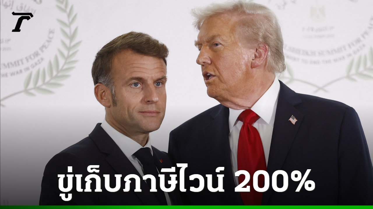 โดนัลด์ ทรัมป์ ขู่เก็บภาษีไวน์-แชมเปญฝรั่งเศส 200% กดดัน เอ็มมานูเอล มาครง เข้าร่วม “คณะกรรมการสันติภาพ” ขณะที่ฝรั่งเศสโจมตีกลับว่าคำขู่เช่นนี้เป็นเรื่องที่ยอมรับไม่ได้