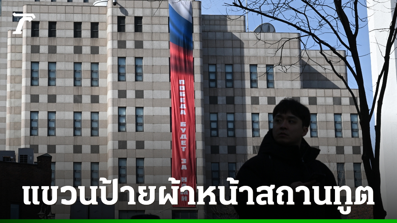เกาหลีใต้ประท้วงทางการรัสเซีย หลังพบสถานทูตรัสเซียในกรุงโซลแขวนแผ่นป้ายผ้าขนาดใหญ่ที่มีข้อความในเชิงปลุกใจเพื่อชัยชนะ ที่เชื่อว่าเป็นอ้างถึงวาระครบครอบ 4 ปี การทำสงครามในยูเครน