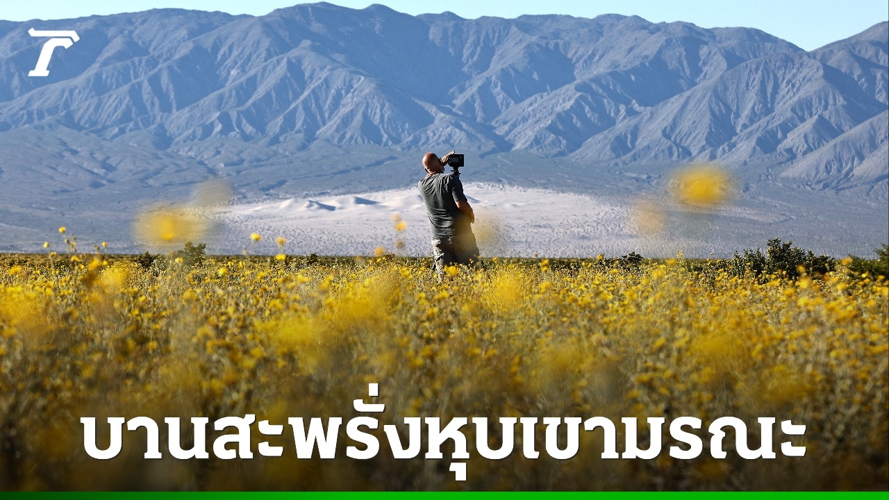 จากพื้นดินที่เคยแห้งแล้งดินแตกระแหง กลับกลายเป็นทุ่งดอกไม้สีทองสุดตระการตา เมื่อปรากฏการณ์ "ซูเปอร์บลูม" เข้าแต่งแต้มสีสันให้ "หุบเขามรณะ" พื้นที่ที่แห้งแล้งที่สุดในอเมริกา หลังได้รับปริมาณน้ำฝนมากที่สุดในรอบหลายปี เผยเป็นความงามเพียงชั่วคราวที่หาชมได้ยากและอาจไม่เกิดขึ้นอีกนานนับปี
